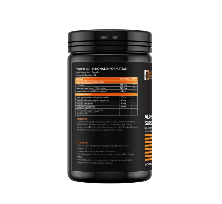 Alpha Surge Max is a high-performance formula engineered to optimize blood flow, vascularity, and physical performance. By combining potent amino acids like L-Citrulline Malate and L-Arginine HCL, this supplement promotes nitric oxide production, which is essential for improved circulation and nutrient delivery to working muscles.